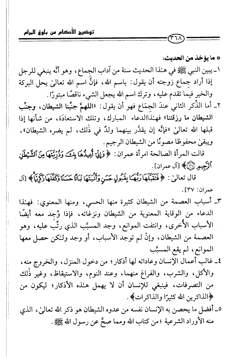 2 - أما الذِّكر الثاني عندَ الجِمَاع فهو أن يقول: "اللهمَّ جنبِّنا الشيطان، وجنِّب الشيطان ما رزقتنا" فهذا الدعاء المبارك، وتلك الاستعاذة، من شأنها إذا قبلها الله تعالى "فإنَّه إن يقدَّر بينهما ولدٌ في ذلك، لم يضره الشيطان"، ويبقى محفوظًا مصونًا من الشيطان الرجيم.