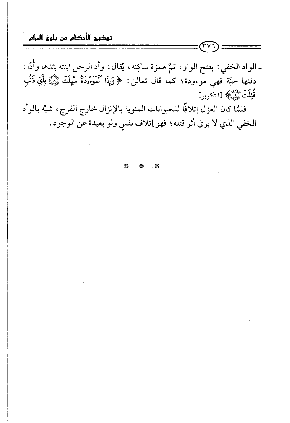 فلمّا كان العزل إتلافًا للحيوانات المنوية بالإنزال خارج الفرج، شبِّه بالوأد الخفي الذي لا يرى أثر قتله؛ فهو إتلاف نفسٍ ولو بعيدة عن الوجود.