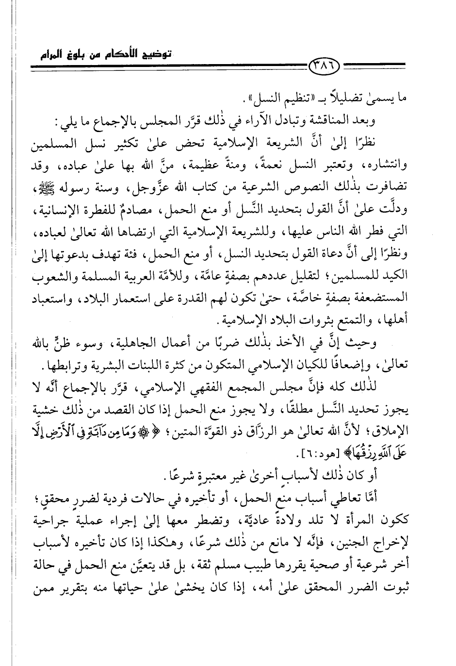 لذلك كله فإنَّ مجلس المجمع الفقهي الإسلامي، قرَّر بالإجماع أنَّه لا يجوز تحديد النَّسل مطلقًا، ولا يجوز منع الحمل إذا كان القصد من ذلك خشية الإملاق؛ لأنَّ الله تعالى هو الرزَّاق ذو القوَّة المتين؛ {وَمَا مِنْ دَابَّةٍ فِي الْأَرْضِ إِلَّا عَلَى اللَّهِ رِزْقُهَا} [هود: 6].