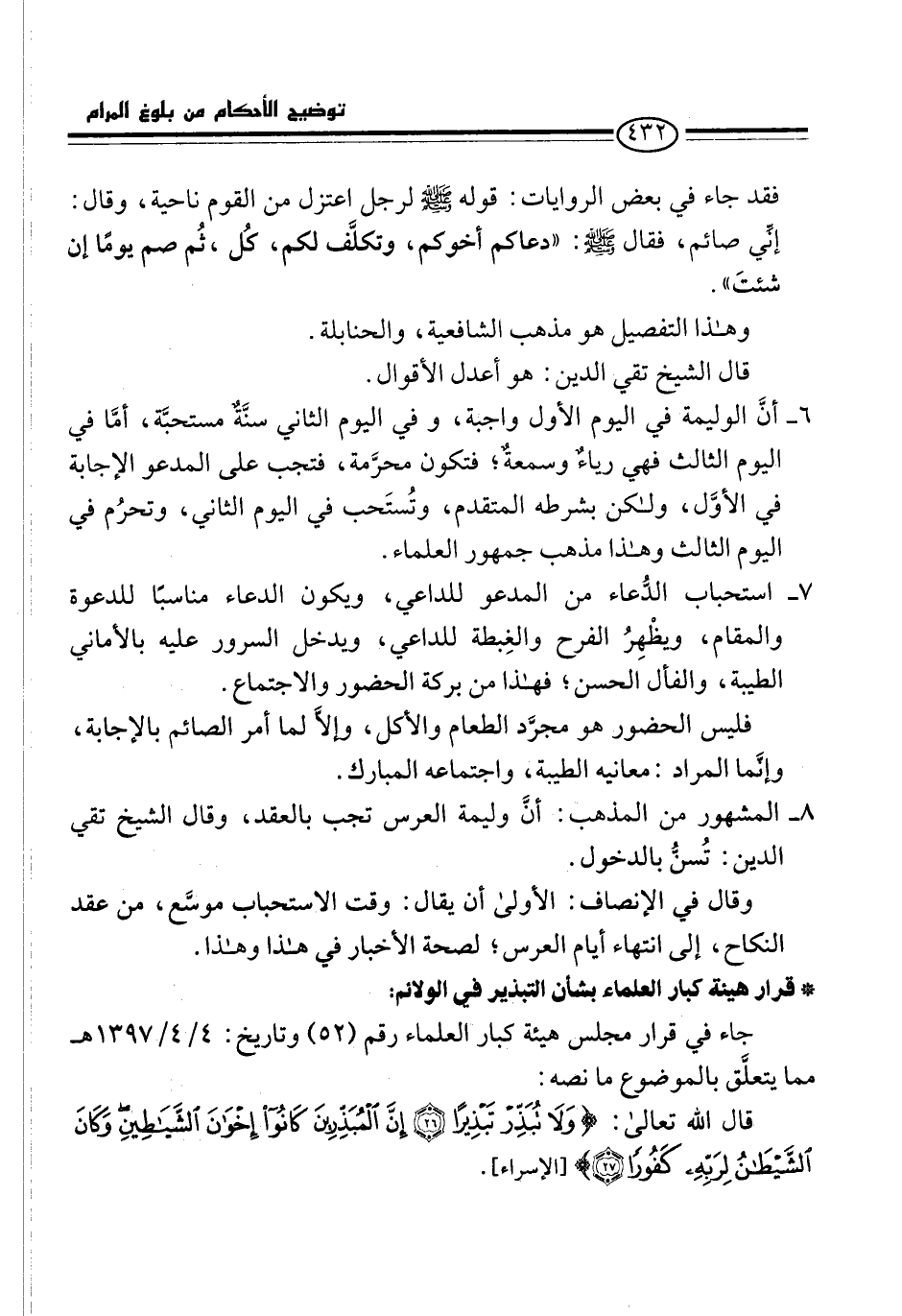 * قرار هيئة كبار العلماء بشأن التبذير في الولائم: