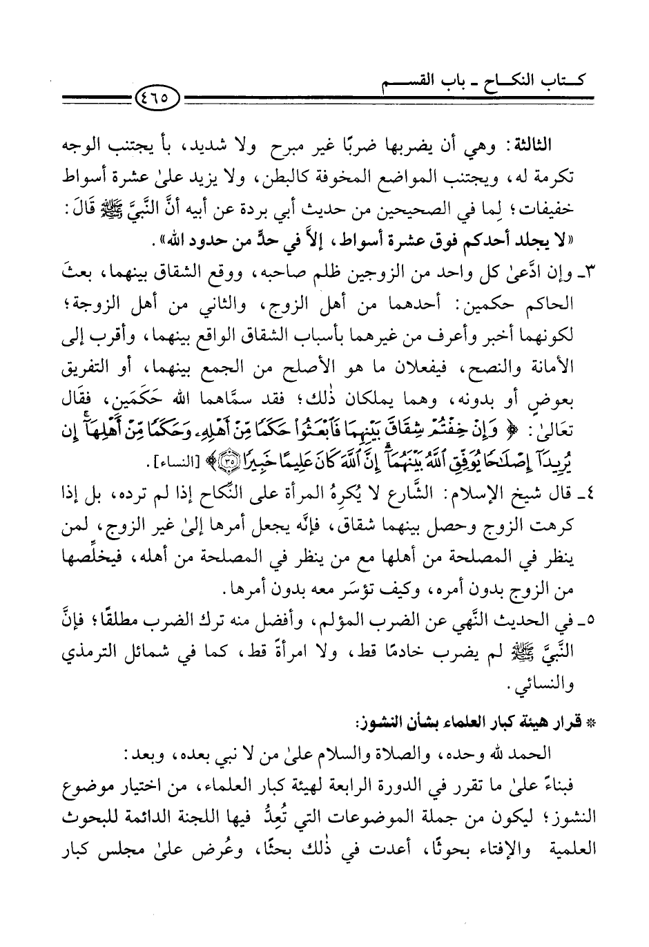 * قرار هيئة كبار العلماء بشأن النشوز: