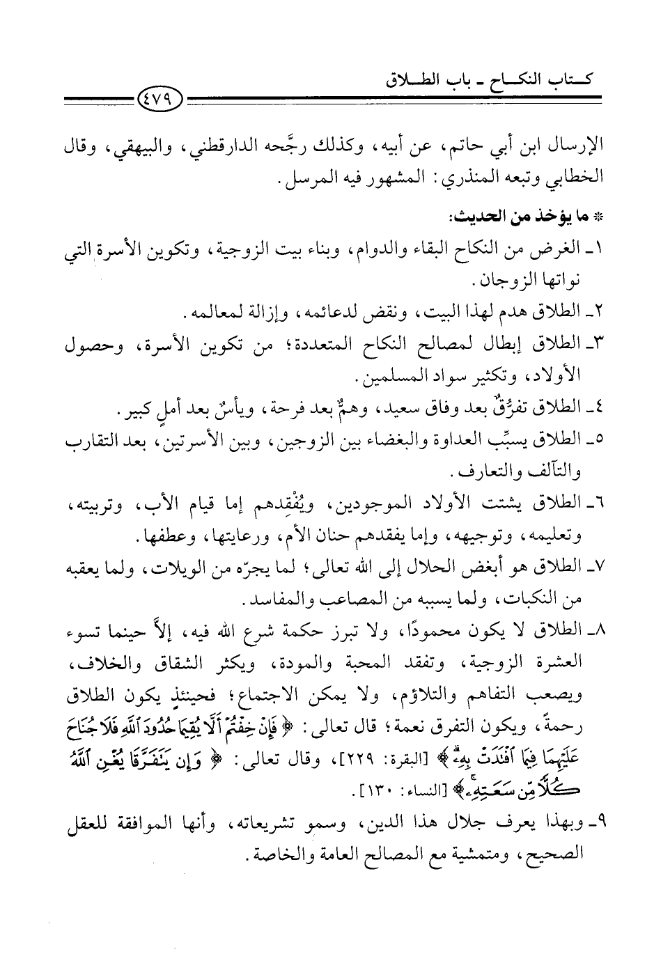 7 - الطلاق هو أبغض الحلال إلى الله تعالى؛ لما يجرّه من الويلات، ولما يعقبه من النكبات، ولما يسببه من المصاعب والمفاسد.