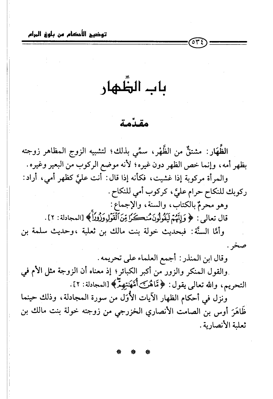الظِّهَار: مشتقٌّ من الظَّهْر، سمِّي بذلك؛ لتشبيه الزوج المظاهر زوجته بظهر أمه، وإنما خص الظهر دون غيره؛ لأنه موضع الركوب من البعير وغيره.