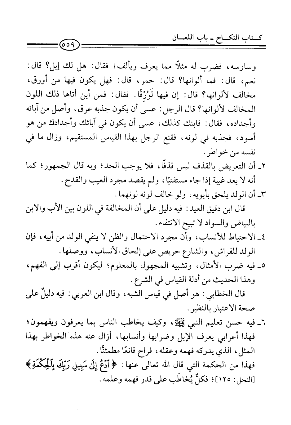 قال الخطابي: هو أصل في قياس الشبه، وقال ابن العربي: فيه دليلٌ على صحة الاعتبار بالنظير.