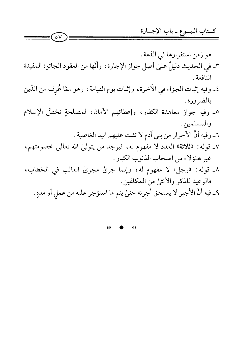 9 - فيه أنَّ الأجير لا يستحق أجرته حتى يتم ما استؤجر عليه من عملٍ أو مدةٍ.