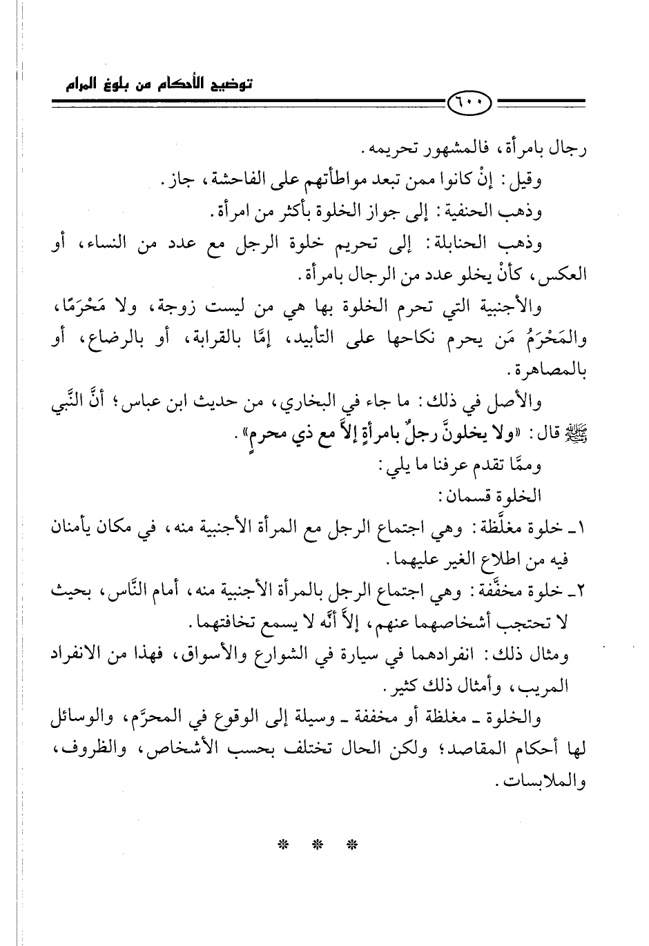 والأصل في ذلك: ما جاء في البخاري، من حديث ابن عباس؛ أنَّ النَّبي -صلى الله عليه وسلم- قال: "ولا يخلونَّ رجلٌ بامرأةٍ إلاَّ مع ذي محرمٍ".