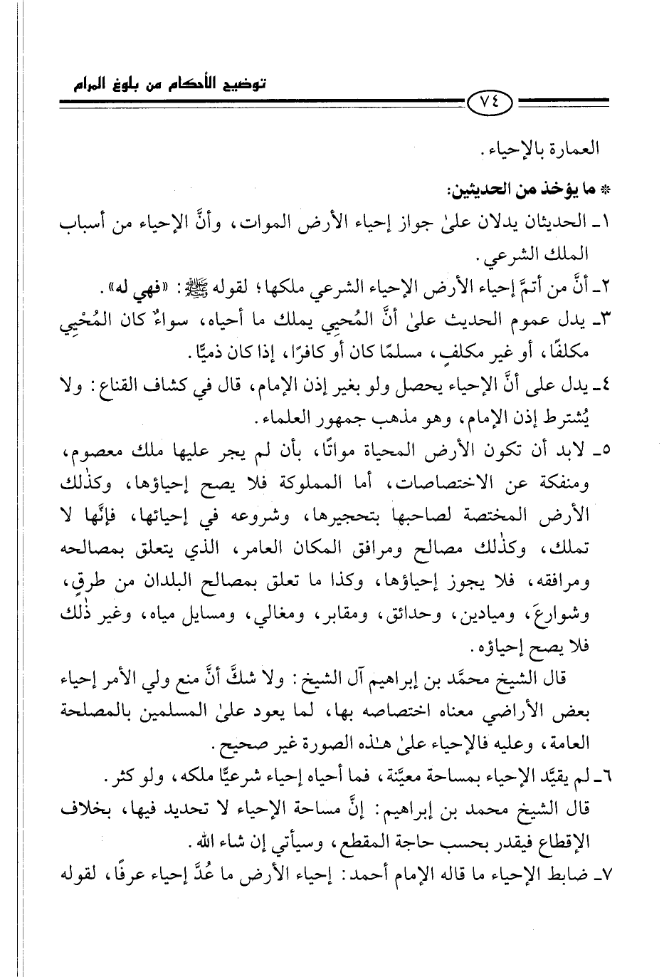4 - يدل على أنَّ الإحياء يحصل ولو بغير إذن الإمام، قال في كشاف القناع: ولا يُشترط إذن الإمام، وهو مذهب جمهور العلماء.