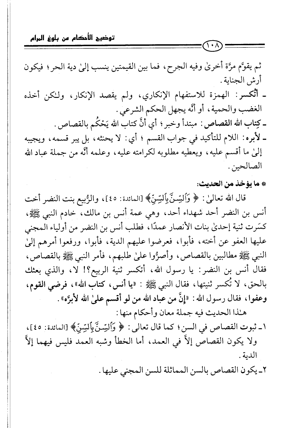 قال الله تعالى: {وَالسِّنَّ بِالسِّنِّ} [المائدة: 45]، والرُّبيع بنت النضر أخت أنس بن النضر أحد شهداء أحد، وهي عمة أنس بن مالك، خادم النبي -صلى الله عليه وسلم-، كسَرت ثنية إحدى بنات الأنصار عمدًا، فطلب أنس بن النضر من أولياء المجني عليها العفو عن أخته، فأبوا، فعرضوا عليهم الدية، فأبوا، ورفعوا أمرهم إلى النبي -صلى الله عليه وسلم- مطالبين بالقصاص، وأصرُّوا على طلبهم، فأمر النبي -صلى الله عليه وسلم- بالقصاص، فقال أنس بن النضر: يا رسول الله، أتكسر ثنية الربيع؟! لا، والذي بعثك بالحق، لا تُكسر ثنيتها، فقال النبي -صلى الله عليه وسلم-: "يا أنس، كتاب الله"، فرضي القوم، وعفوا، فقال رسول الله: "إنَّ من عباد الله من لو أقسم على الله لأبرَّه".