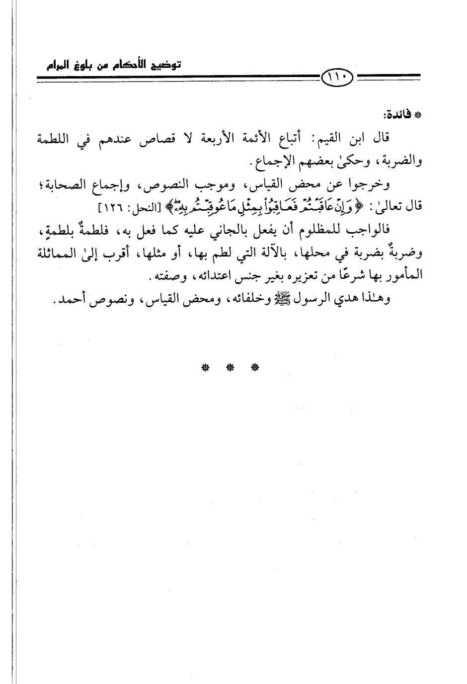 قال ابن القيم: أتباع الأئمة الأربعة لا قصاص عندهم في اللطمة والضربة، وحكى بعضهم الإجماع.