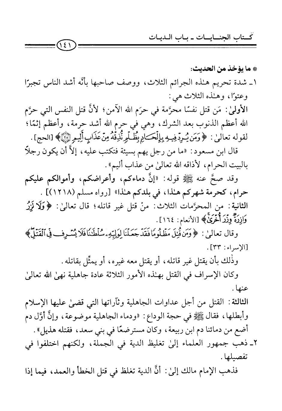 الثانية: من المحرَّمات الثلاث: منْ قتل غير قاتله، قال تعالى: {وَلَا تَزِرُ وَازِرَةٌ وِزْرَ أُخْرَى} [الأنعام: 164].