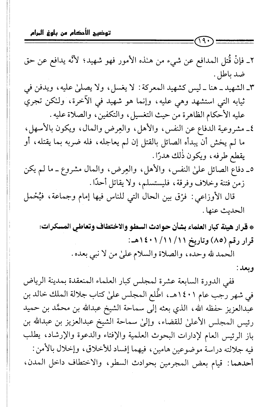 * قرار هيئة كبار العلماء بشأن حوادث السطو والاختطاف وتعاطي المسكرات:
