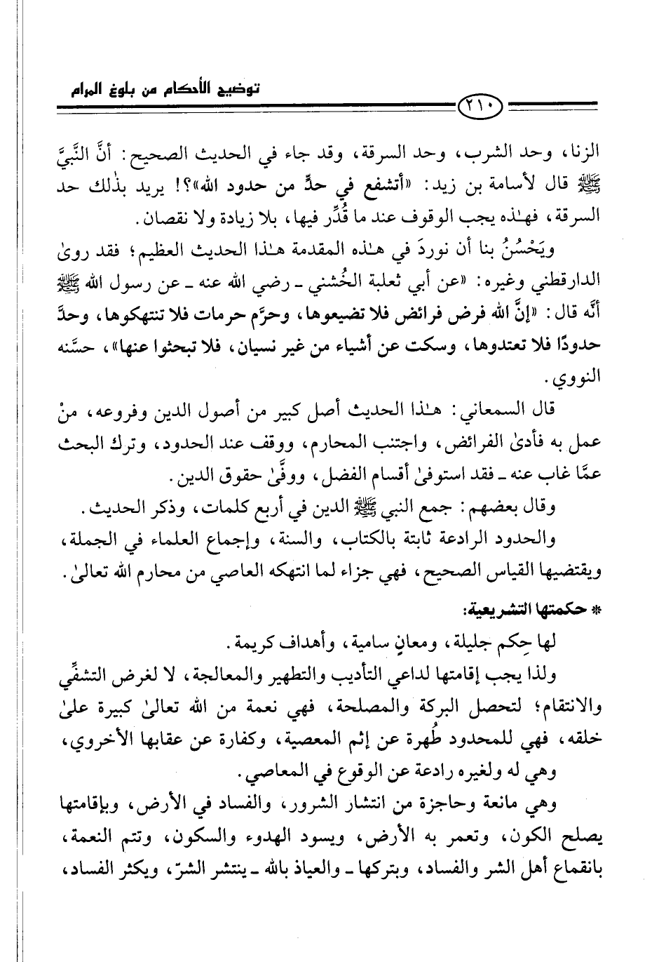 ولذا يجب إقامتها لداعي التأديب والتطهير والمعالجة، لا لغرض التشفِّي والانتقام؛ لتحصل البركة والمصلحة، فهي نعمة من الله تعالى كبيرة على خلقه، فهي للمحدود طُهرة عن إثم المعصية، وكفارة عن عقابها الأخروي، وهي له ولغيره رادعة عن الوقوع في المعاصي.