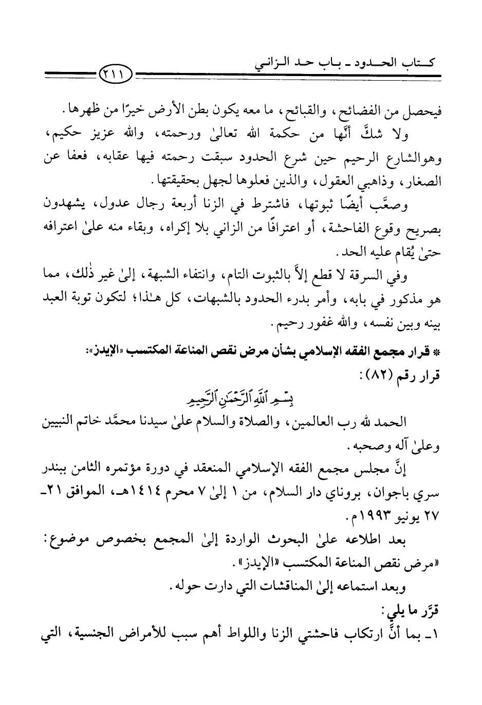 * قرار مجمع الفقه الإسلامي بشأن مرض نقص المناعة المكتسب "الإيدز": قرار رقم (82):