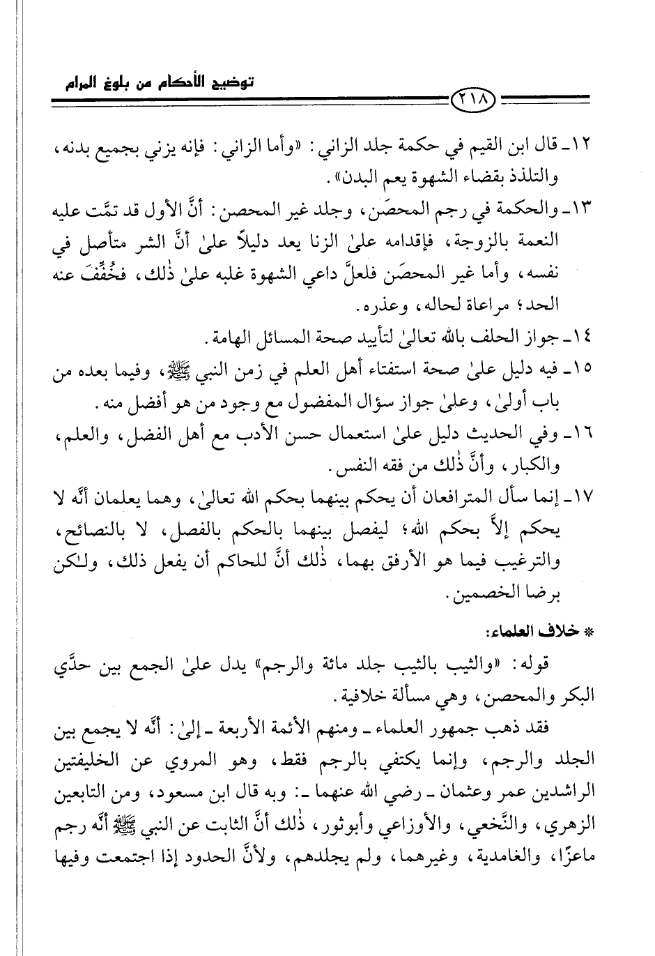 قوله: "والثيب بالثيب جلد مائة والرجم" يدل على الجمع بين حدَّي البكر والمحصن، وهي مسألة خلافية.