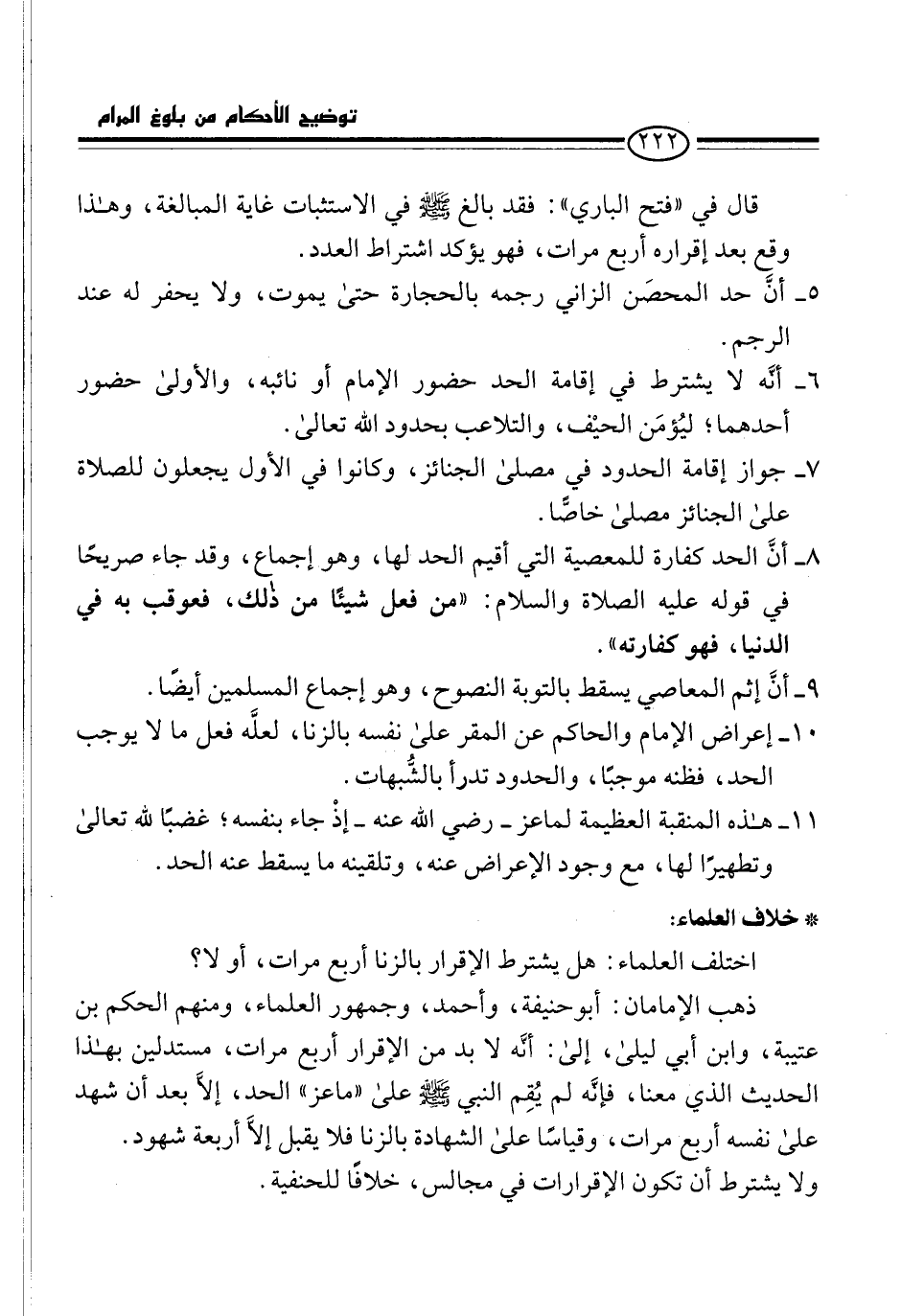 10 - إعراض الإمام والحاكم عن المقر على نفسه بالزنا، لعلَّه فعل ما لا يوجب الحد، فظنه موجبًا، والحدود تدرأ بالشُّبهات.