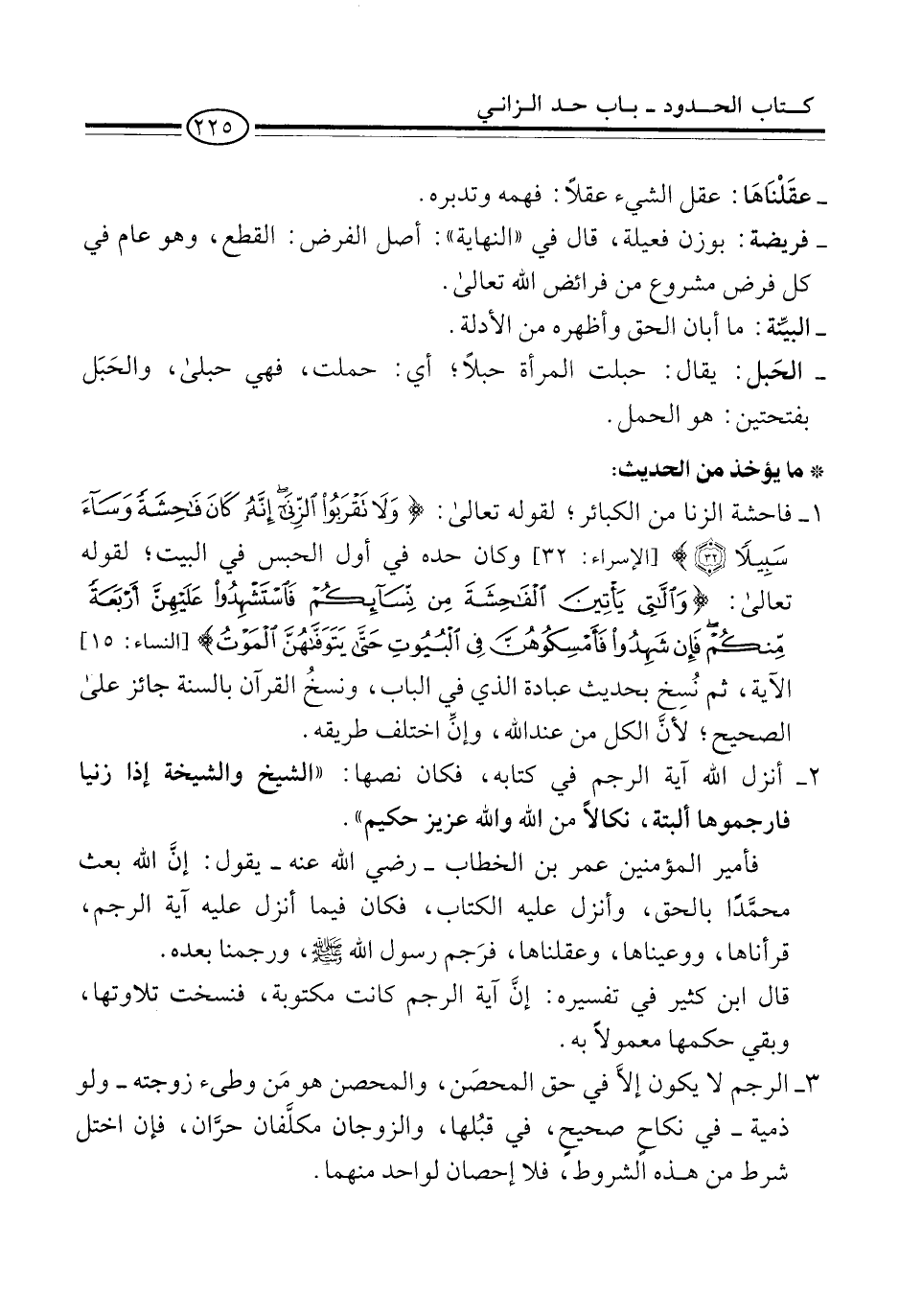 3 - الرجم لا يكون إلاَّ في حق المحصَن، والمحصن هو مَن وطىء زوجته -ولو ذمية- في نكاحٍ صحيحٍ، في قبُلها، والزوجان مكلَّفان حرَّان، فإن اختل شرط من هذه الشروط، فلا إحصان لواحد منهما.