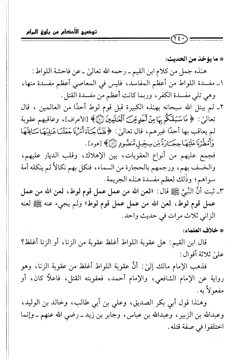قال ابن القيم: هل عقوبة اللواط أغلظ عقوبة من الزنا، أو الزنا أغلظ؟ على ثلاثة أقوال: