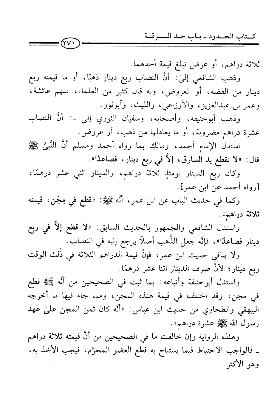وهذه الرواية وإن خالفت ما في الصحيحين من أنَّ قيمته ثلاثة دراهم -فالواجب الاحتياط فيما يستباح به قطع العضو المحرَّم، فيجب الأخذ به، وهو الأكثر.