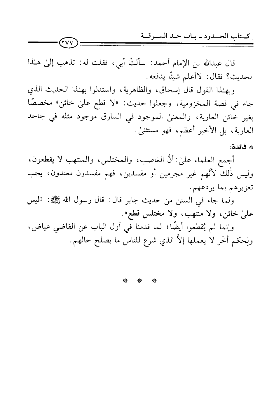 وإنما لم يُقطعوا أيضًا، لما قدمنا في أول الباب عن القاضي عياض، ولِحكم أخَر لا يعملها إلاَّ الذي شرع للناس ما يصلح حالهم.