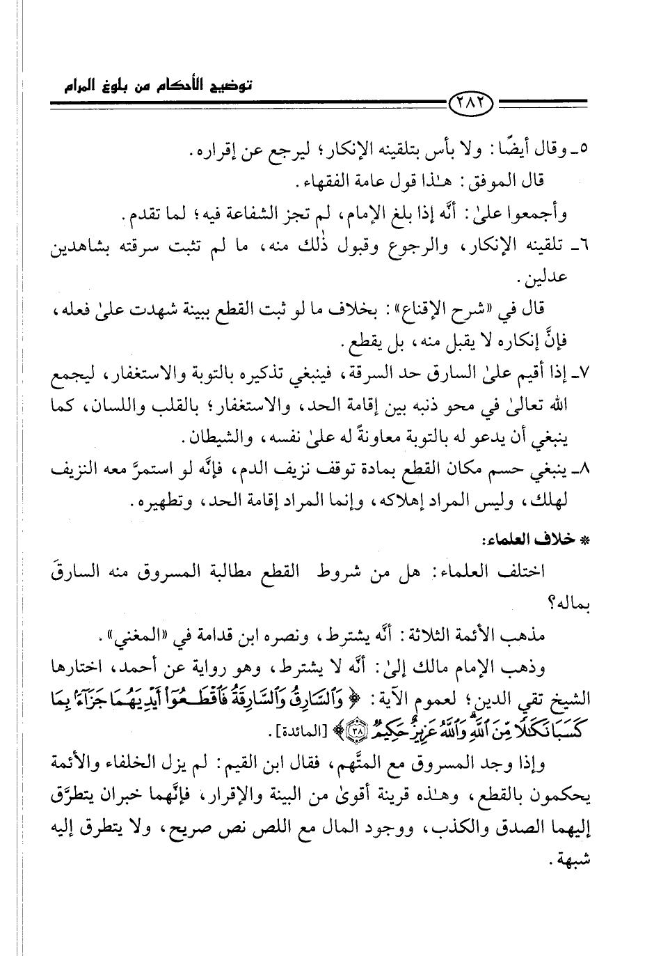 8 - ينبغي حسم مكان القطع بمادة توقف نزيف الدم، فإنَّه لو استمرَّ معه النزيف لهلك، وليس المراد إهلاكه، وإنما المراد إقامة الحد، وتطهيره.