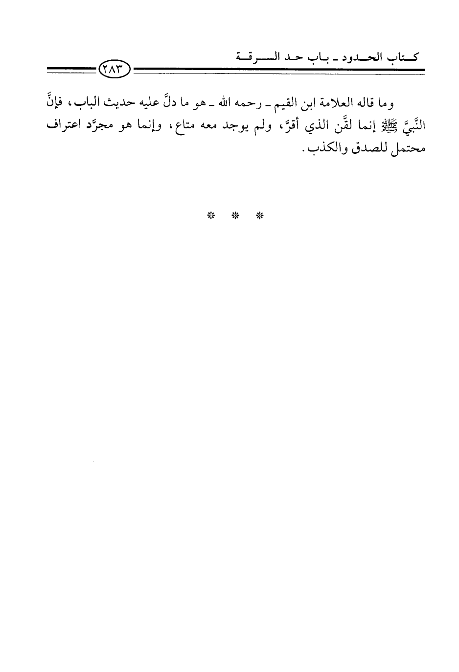 وما قاله العلامة ابن القيم -رحمه الله- هو ما دلَّ عليه حديث الباب، فإنَّ النَّبيَّ -صلى الله عليه وسلم- إنما لقَّن الذي أقرَّ، ولم يوجد معه متاع، وإنما هو مجرَّد اعتراف محتمل للصدق والكذب.