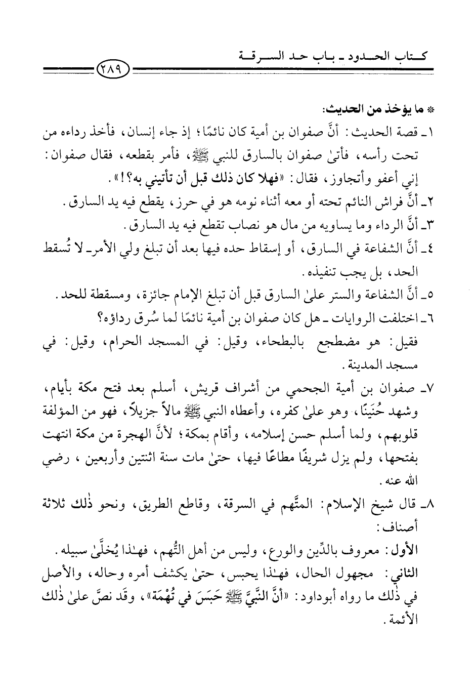4 - أنَّ الشفاعة في السارق، أو إسقاط حده فيها بعد أن تبلغ ولي الأمر -لا تُسقط الحد، بل يجب تنفيذه.