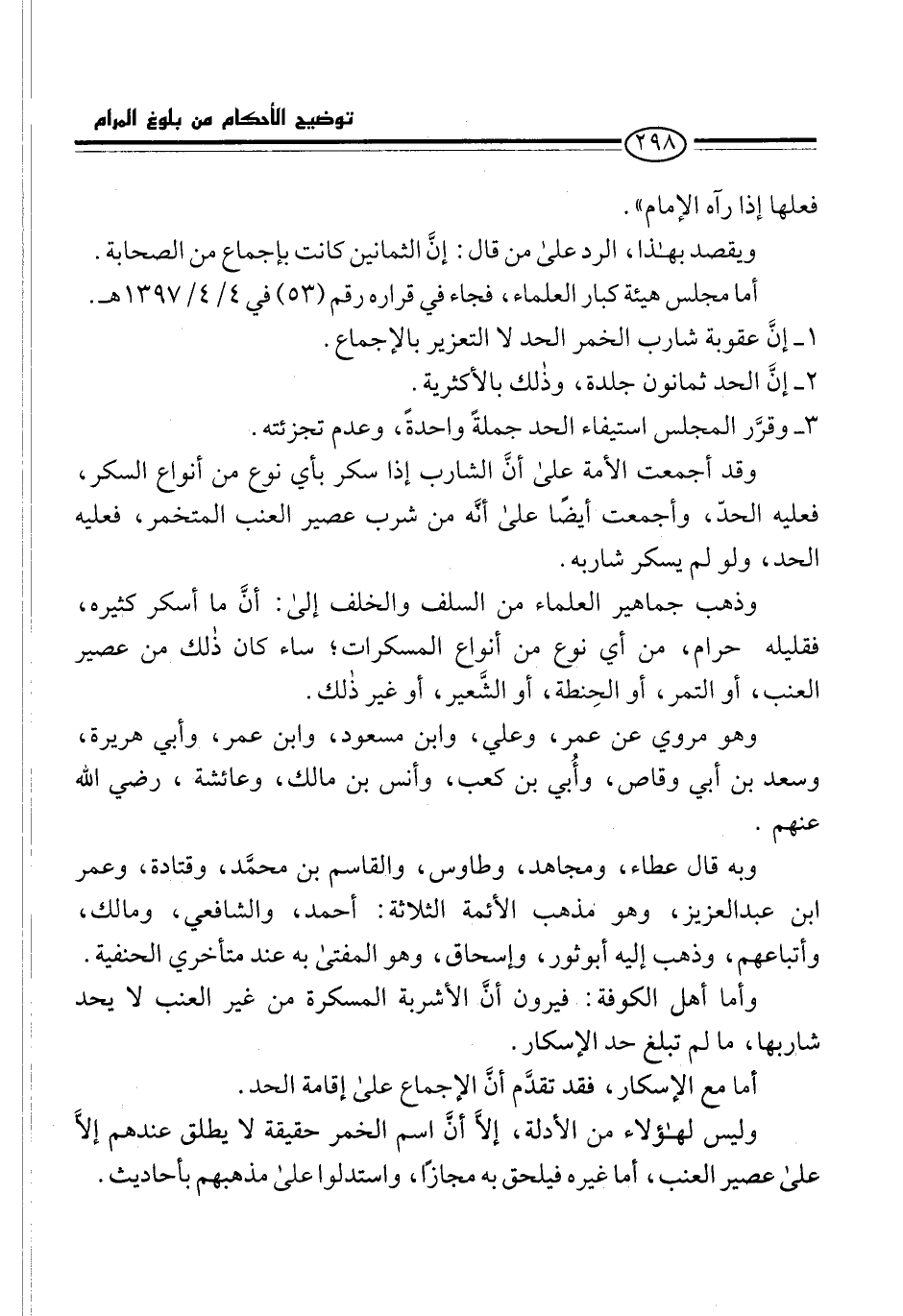 وقد أجمت الأمة على أنَّ الشارب إذا سكر بأي نوع من أنول السكر، فعليه الحدّ، وأجمعت أيضًا على أنَّه من شرب عصير العنب المتخمر، فعليه الحد، ولو لم يسكر شاربه.