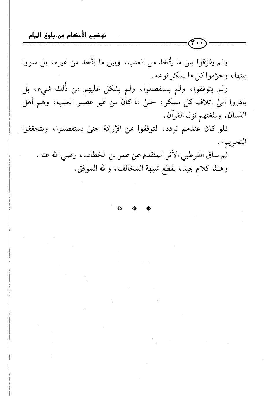 ولم يفرِّقوا بين ما يتَّخذ من العنب، وبين ما يتَّخذ من غيره، بل سووا بينها، وحرَّموا كل ما يسكر نوعه.