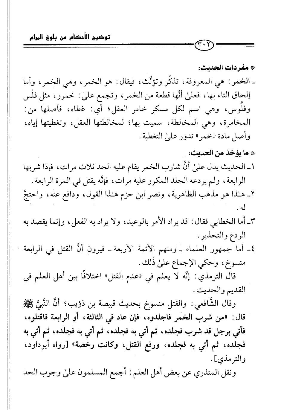 وقال الشَّافعي: والقتل منسوخ بحديث قبيصة بن ذؤيب؛ أنَّ النَّبيَّ -صلى الله عليه وسلم- قال: "من شرب الخمر فاجلدوه، فإن عاد في الثالثة، أو الرابعة فاقتلوه، فأتي برجل قد شرب فجلده، ثم أتي به فجلده، ثم أتي به فجلده، ثم أتي به فجلده، ثم أتي به فجلده، ورفع القتل، وكانت رخصة" [رواه أبو داود، والترمذي].