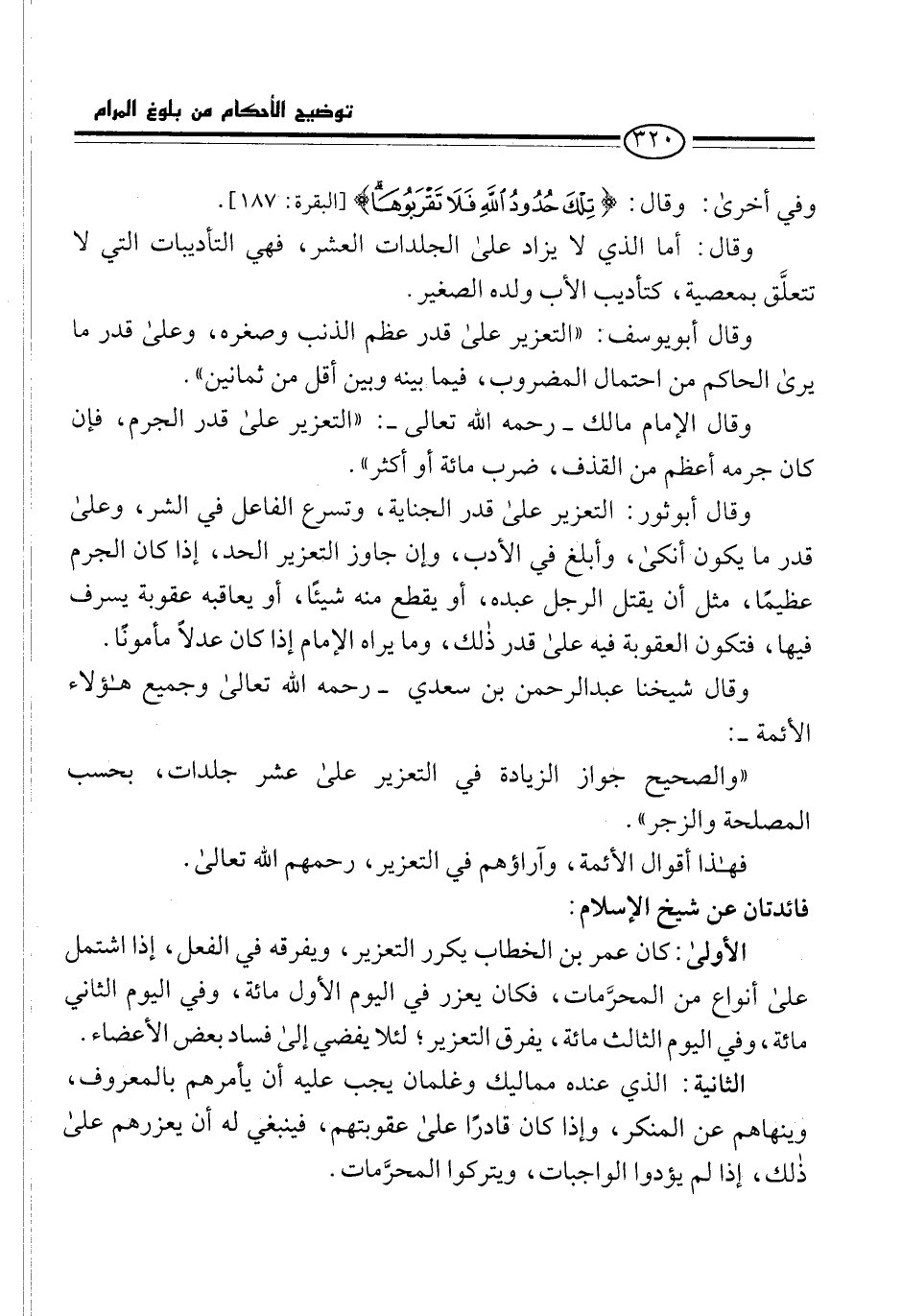 وقال: أما الذي لا يزاد على الجلدات العشر، فهي التأديبات التي لا تتعلَّق بمعصية، كتأديب الأب ولده الصغير.
