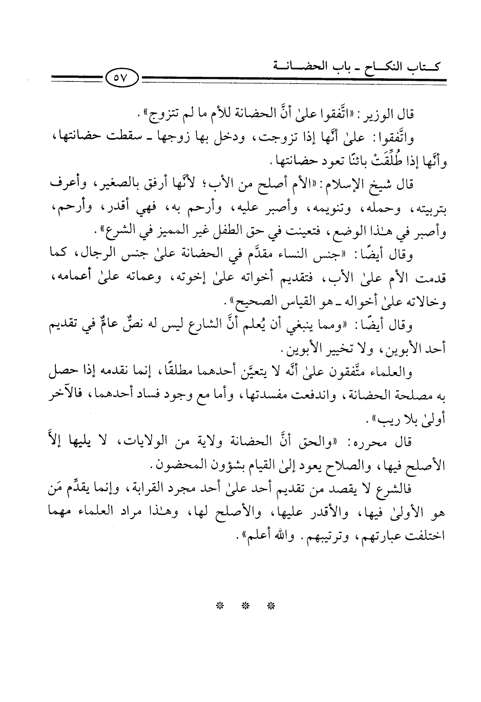 قال الوزير: "اتَّفقوا على أنَّ الحضانة للأم ما لم تتزوج".