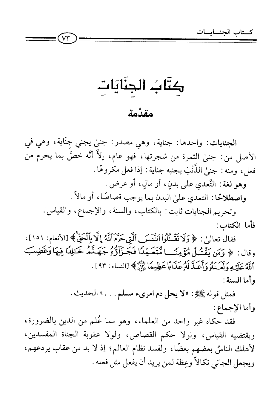 وتحريم الجنايات ثابت: بالكتاب، والسنة، والإجماع، والقياس.