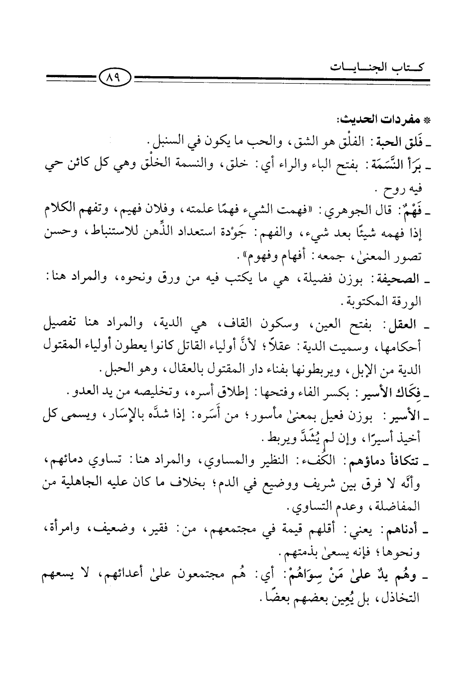 - العقل: بفتح العين، وسكون القاف، هي الدية، والمراد هنا تفصيل أحكامها، وسميت الدية: عقلاً؛ لأنَّ أولياء القاتل كانوا يعطون أولياء المقتول الدية من الإبل، ويربطونها بفناء دار المقتول بالعقال، وهو الحبل.