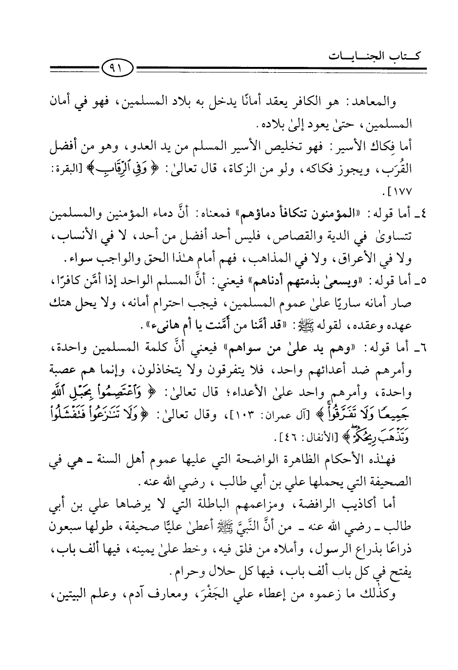 فهذه الأحكام الظاهرة الواضحة التي عليها عموم أهل السنة -هي في الصحيفة التي يحملها علي بن أبي طالب، رضي الله عنه.