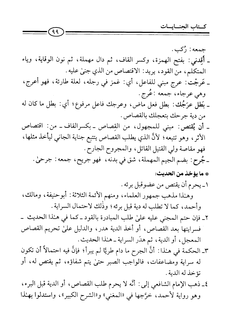 1 - يحرم أن يقتص من عضو قبل برئه.