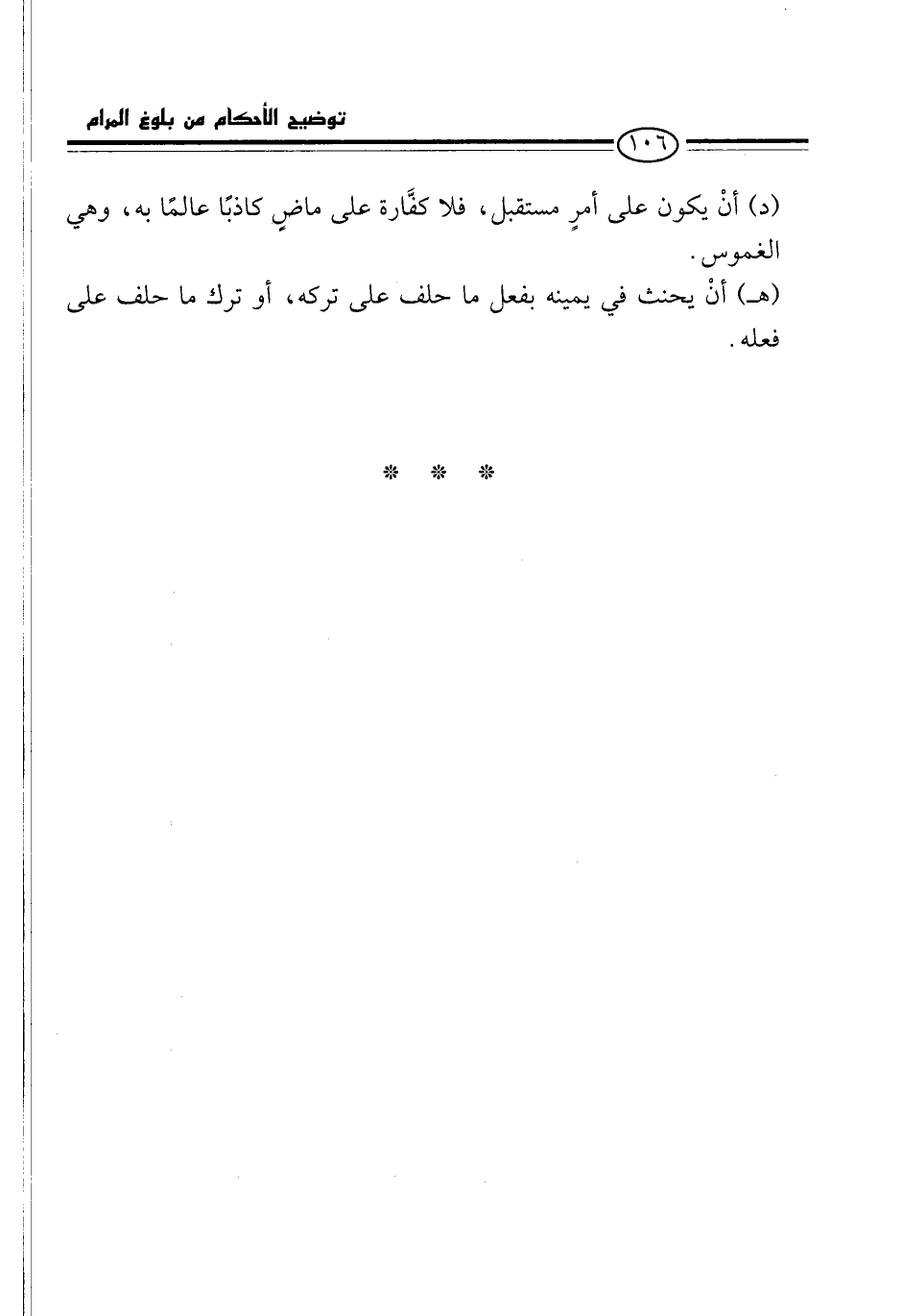 (د) أنْ يكون على أمرٍ مستقبل، فلا كفَّارة على ماضٍ كاذبًا عالمًا به، وهي الغموس.