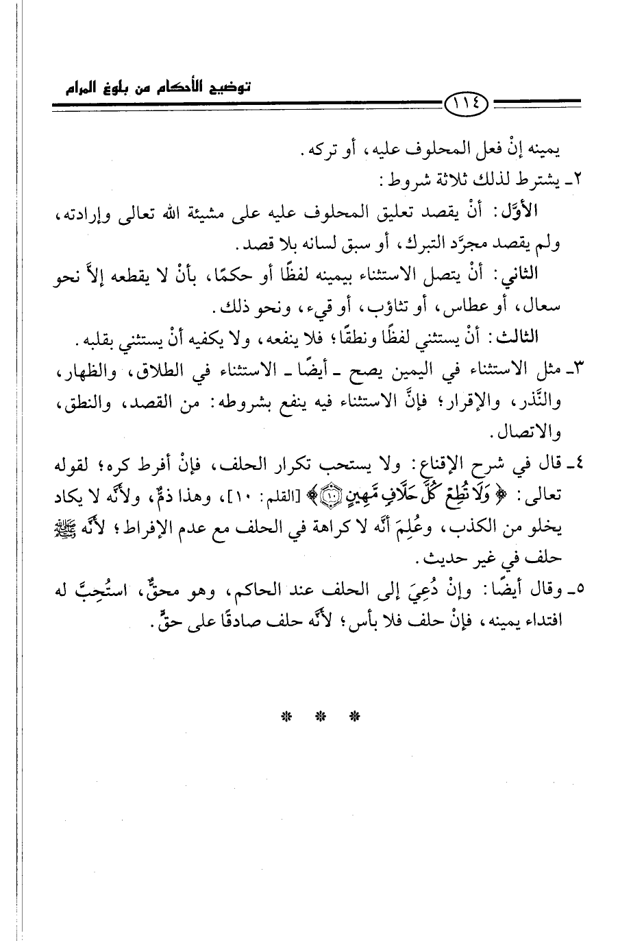 الثاني: أنْ يتصل الاستثناء بيمينه لفظًا أو حكمًا، بأنْ لا يقطعه إلاَّ نحو سعال، أو عطاس، أو تثاؤب، أو قيء، ونحو ذلك.