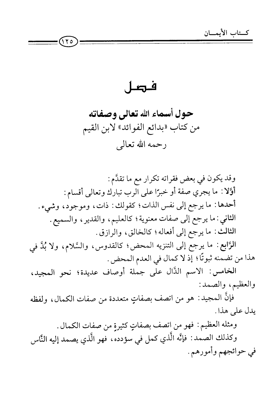 فصل حول أسماء الله تعالى وصفاته من كتاب "بدائع الفوائد" لابن القيم رحمه الله تعالى