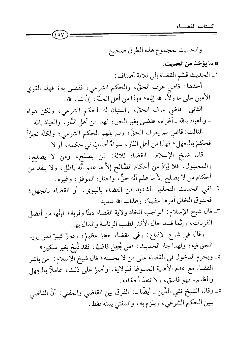 1 - الحديث قسَّم القضاة إلى ثلاثة أصناف: