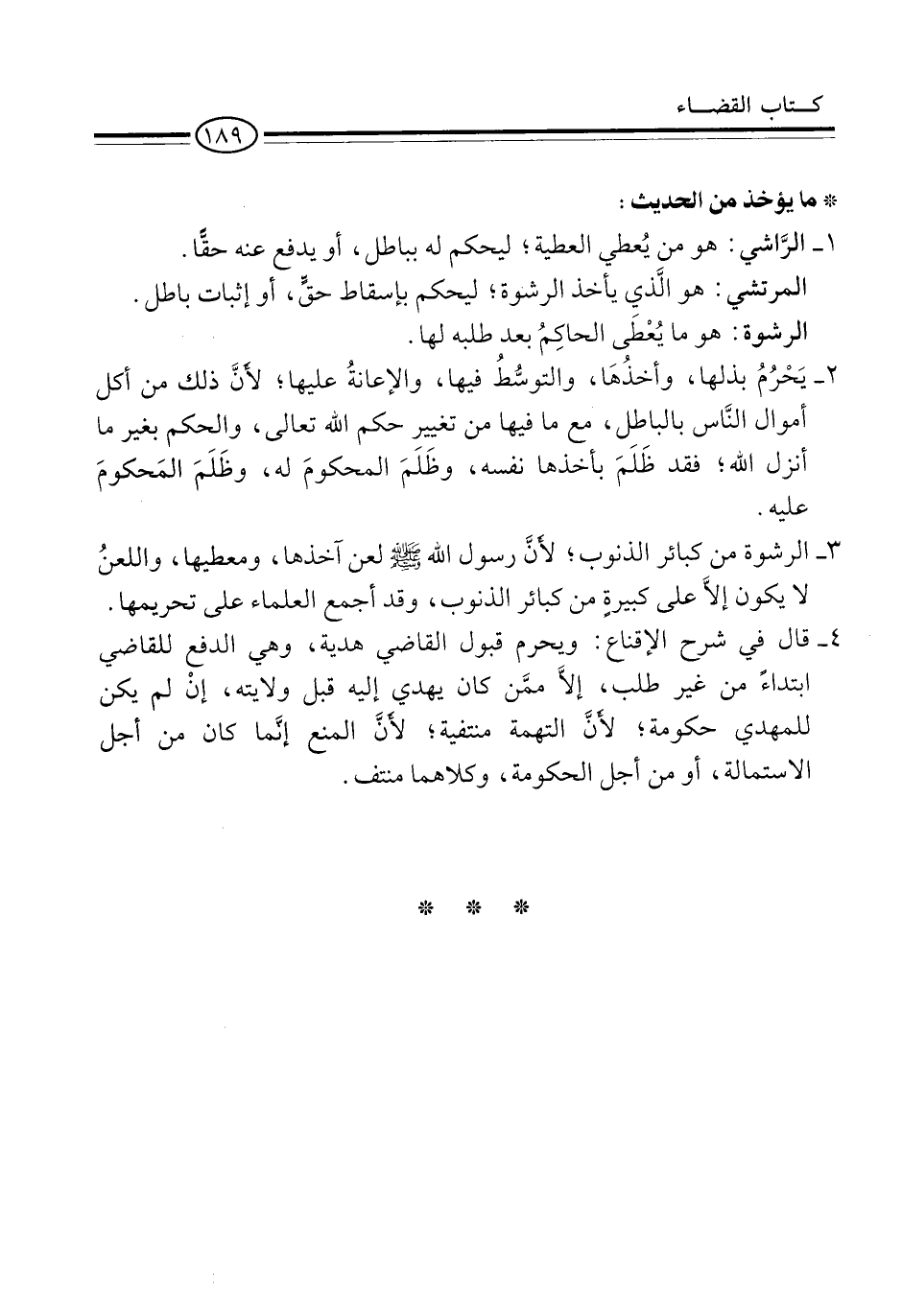 3 - الرشوة من كبائر الذنوب؛ لأنَّ رسول الله -صلى الله عليه وسلم- لعن آخذها، ومعطيها، واللعنُ لا يكون إلاَّ على كبيرةٍ من كبائر الذنوب، وقد أجمع العلماء على تحريمها.