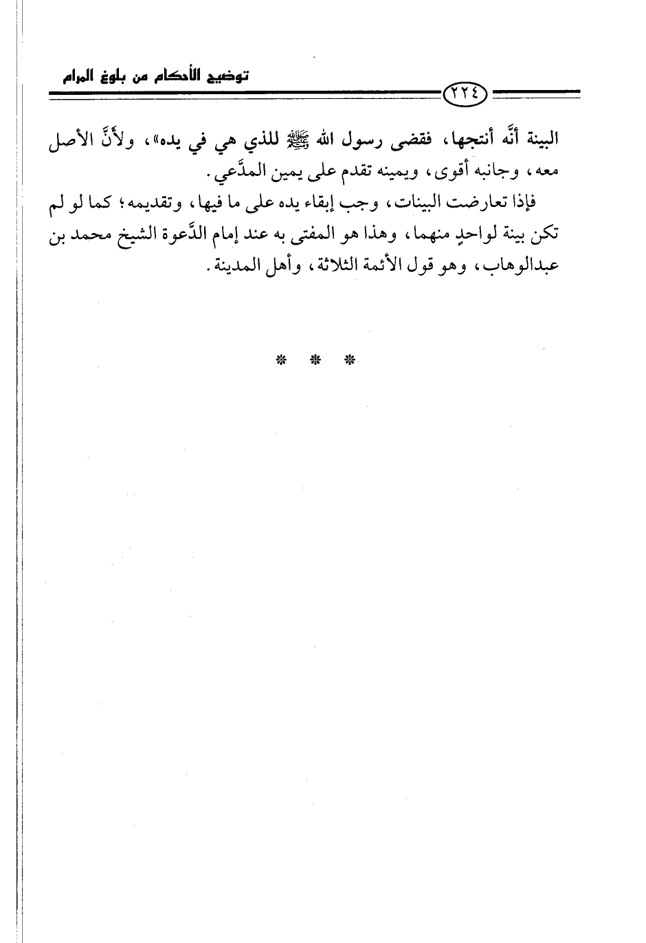 فإذا تعارضت البينات، وجب إبقاء يده على ما فيها، وتقديمه؛ كما لو لم تكن بينة لواحدٍ منهما، وهذا هو المفتى به عند إمام الدَّعوة الشيخ محمد بن عبد الوهاب، وهو قول الأئمة الثلاثة، وأهل المدينة.