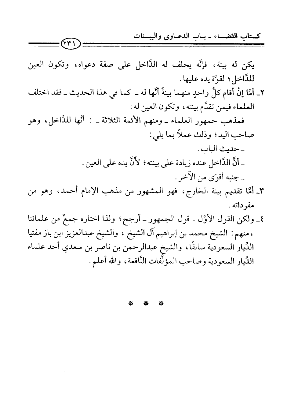3 - أمَّا تقديم بينة الخارج، فهو المشهور من مذهب الإمام أحمد، وهو من مفرداته.