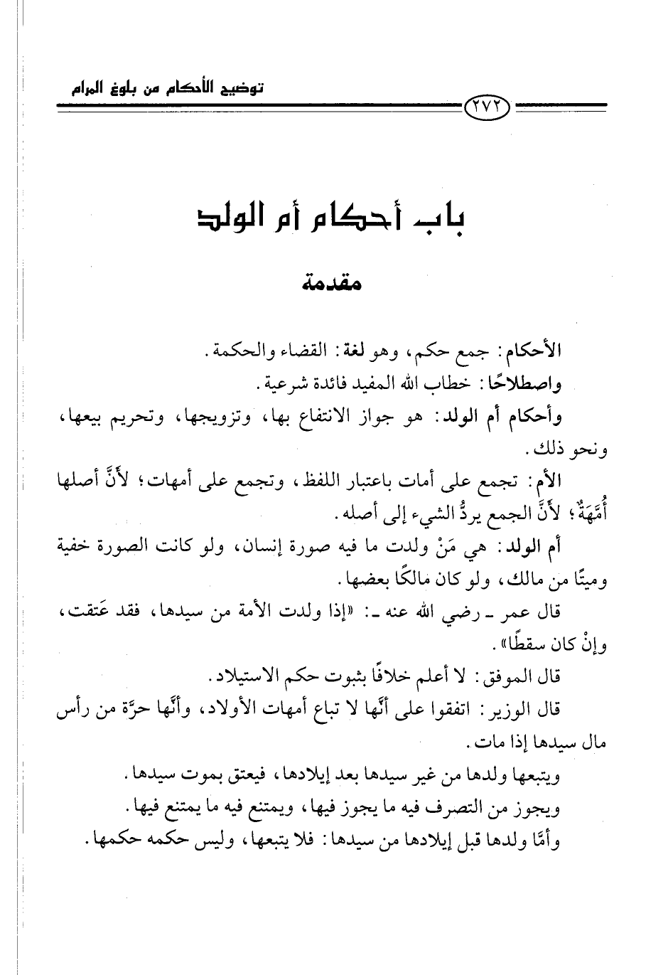 أم الولد: هي مَنْ ولدت ما فيه صورة إنسان، ولو كانت الصورة خفية وميتًا من مالك، ولو كان مالكًا بعضها.