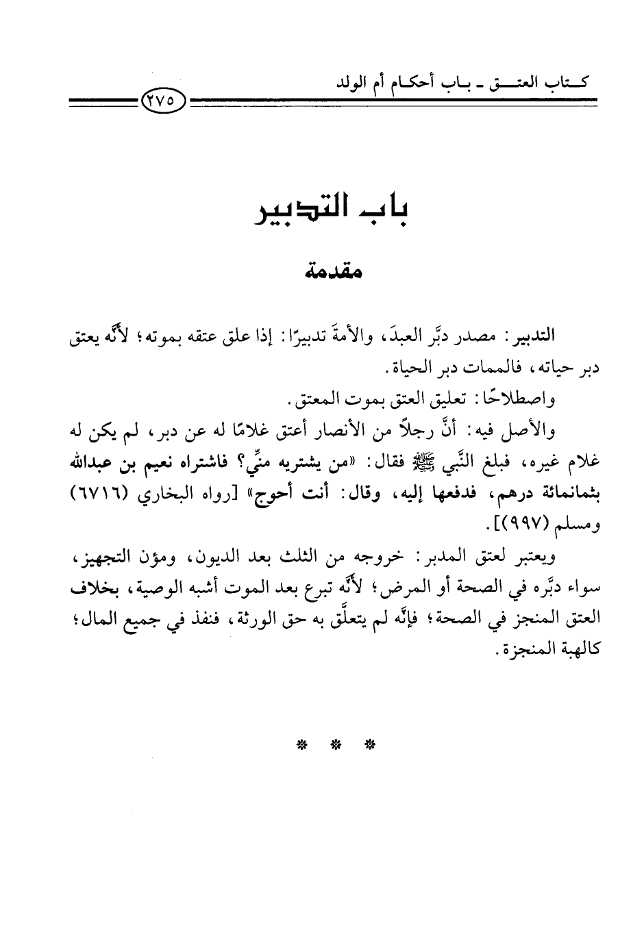 والأصل فيه: أنَّ رجلًا من الأنصار أعتق غلامًا له عن دبر، لم يكن له غلام غيره، فبلغ النَّبي -صلى الله عليه وسلم- فقال: "من يشتريه منِّي؟ فاشتراه نعيم بن عبد الله بثمانمائة درهم، فدفعها إليه، وقال: أنت أحوج" [رواه البخاري (6716) ومسلم (997)].