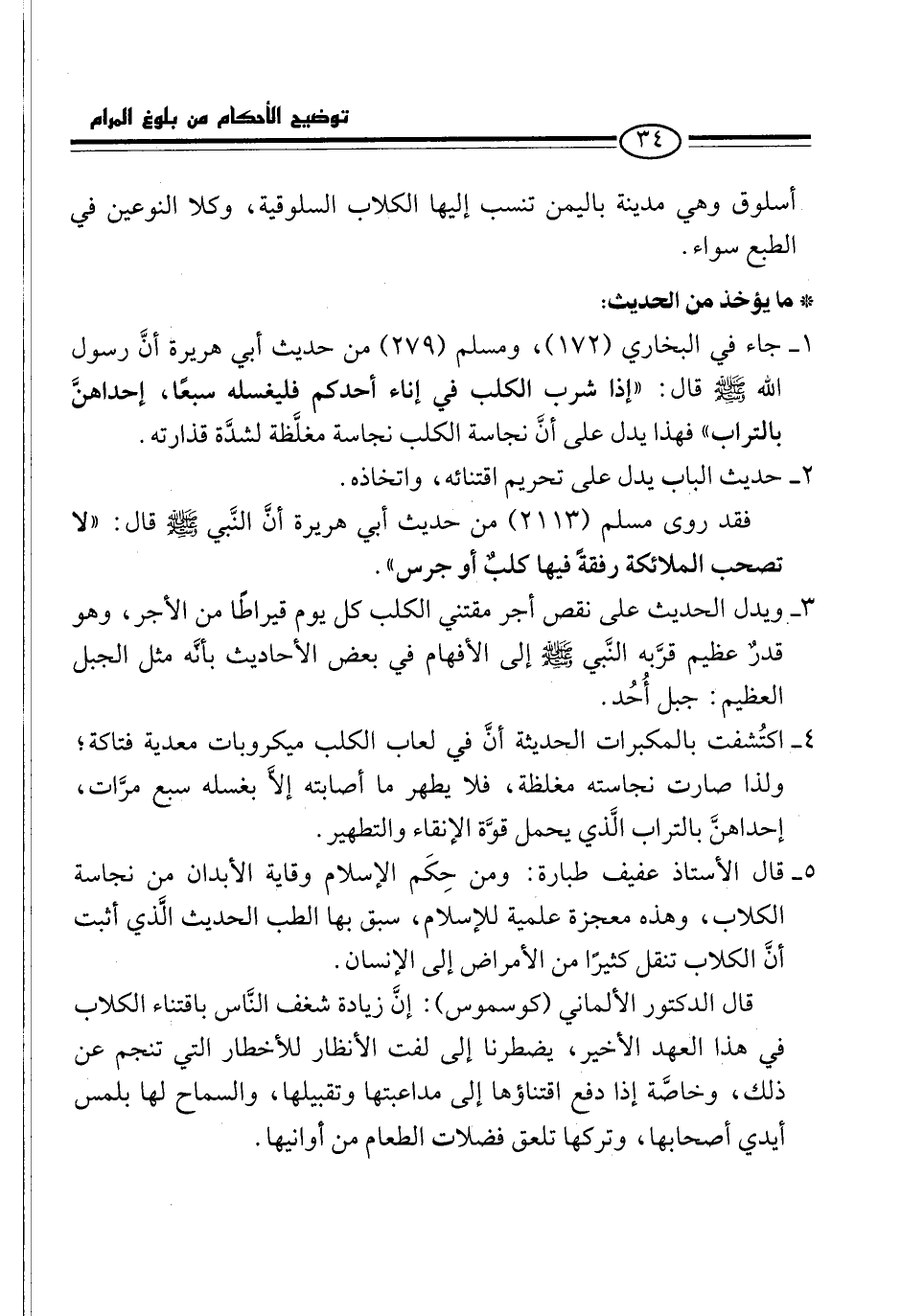 5 - قال الأستاذ عفيف طبارة: ومن حِكَم الإِسلام وقاية الأبدان من نجاسة الكلاب، وهذه معجزة علمية للإسلام، سبق بها الطب الحديث الَّذي أثبت أنَّ الكلاب تنقل كثيرًا من الأمراض إلى الإنسان.