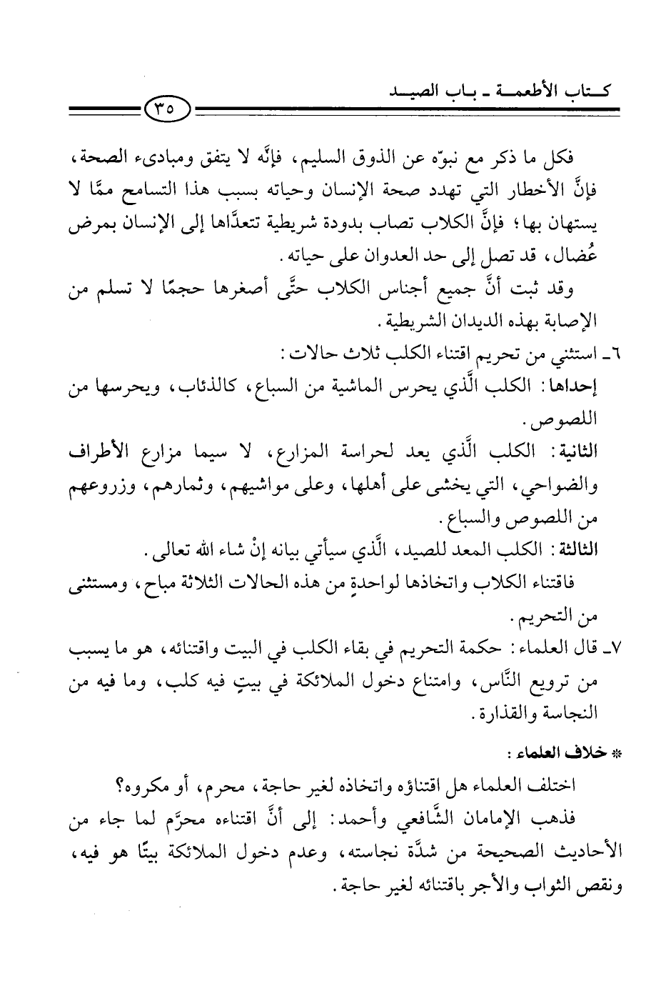 6 - استثني من تحريم اقتناء الكلب ثلاث حالات: