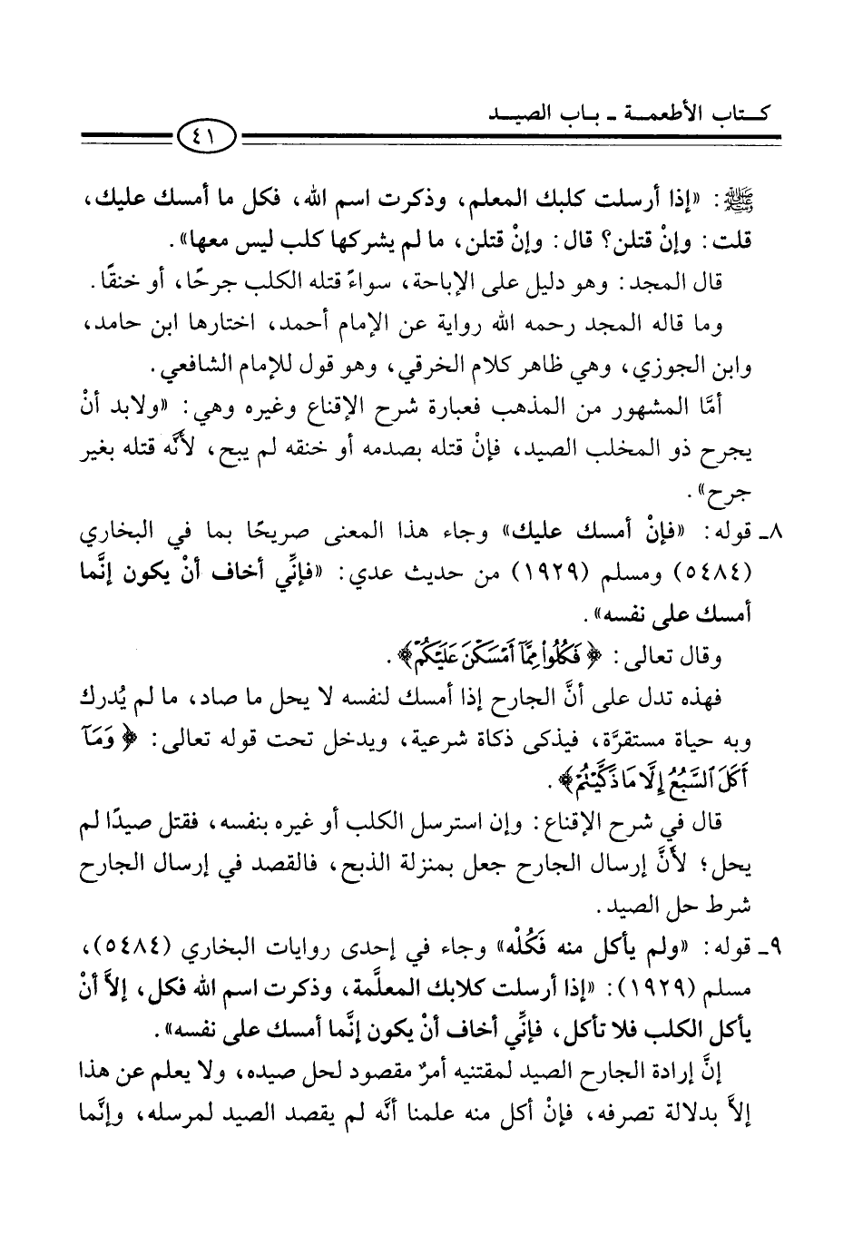 8 - قوله: "فإنْ أمسك عليك" وجاء هذا المعنى صريحًا بما في البخاري (5484) ومسلم (1929) من حديث عدي: "فإنِّي أخاف أنْ يكون إنَّما أمسك على نفسه".