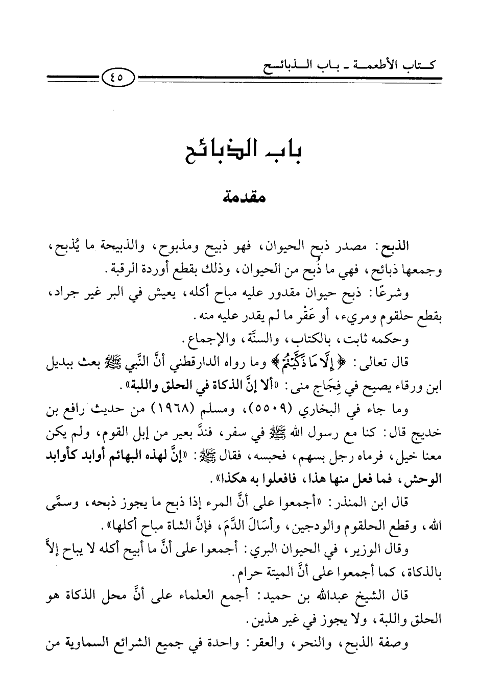 قال تعالى: {إِلاَّ مَا ذَكَّيْتُمْ} وما رواه الدارقطني أنَّ النَّبي -صلى الله عليه وسلم- بعث ببديل ابن ورقاء يصيح في فِجَاج مني: "ألا إنَّ الذكاة في الحلق واللبة".