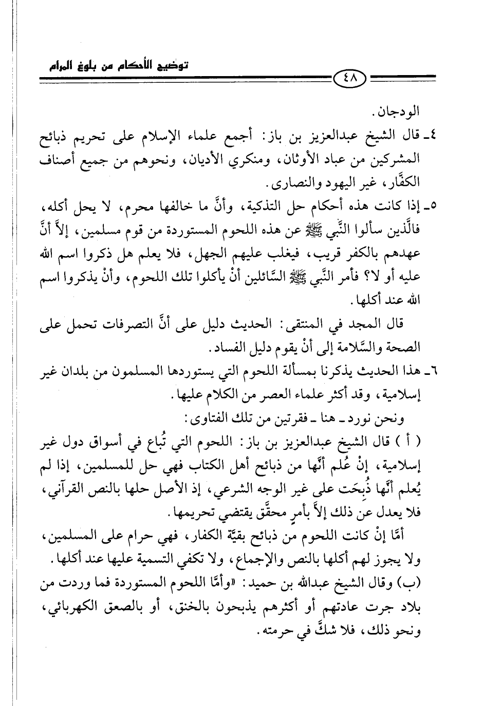 4 - قال الشيخ عبد العزيز بن باز: أجمع علماء الإِسلام على تحريم ذبائح المشركين من عباد الأوثان، ومنكري الأديان، ونحوهم من جميع أصناف الكفَّار، غير اليهود والنصارى.