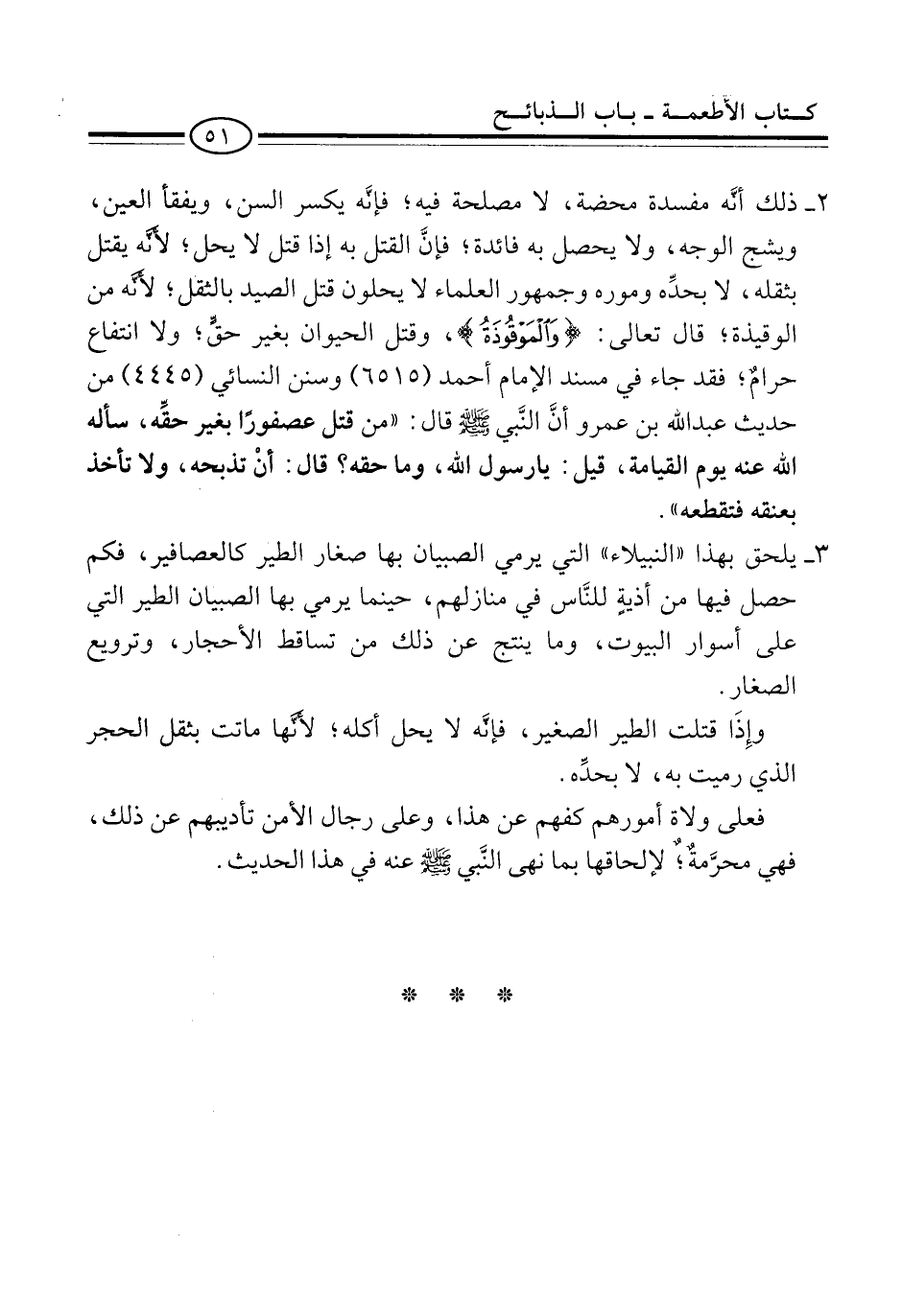 3 - يلحق بهذا "النبيلاء" التي يرمي الصبيان بها صغار الطير كالعصافير، فكم حصل فيها من أذيةٍ للنَّاس في منازلهم، حينما يرمي بها الصبيان الطير التي على أسوار البيوت، وما ينتج عن ذلك من تساقط الأحجار، وترويع الصغار.